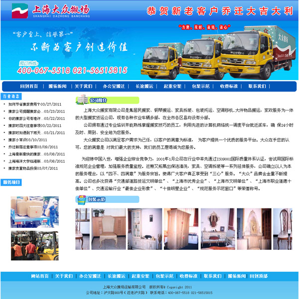 大眾搬家公司以滿足客戶需求為己任,以客戶的滿足為尺度, 為客戶提供一個(gè)優(yōu)質(zhì)的服務(wù)平臺(tái)。大眾在乎您的承認(rèn),您的滿足是 對(duì)我們最大的支持,我們的員工愿竭誠為您服務(wù)。