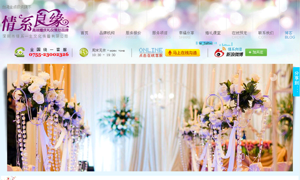 情系良緣前身為帝爾婚禮策劃中心成立于2009年5月,多年來帝爾人不斷摸索與健全服務(wù)體系,堅(jiān)持創(chuàng)意領(lǐng)先的中心思想,保證客戶婚禮的創(chuàng)造性與完整性,2011年在婚慶行業(yè)努力3年的帝爾婚慶公司漸露頭角,2012年臺灣金點(diǎn)投資注資百萬,創(chuàng)意打造“情系良緣”品牌,情系良緣婚慶品牌隸屬于深圳市情系一生文化傳播有限公司,意在打造深圳婚慶第一品牌, 引申中外文化精髓,奉獻(xiàn)于中國婚慶品牌建立和婚慶品牌梳導(dǎo)。