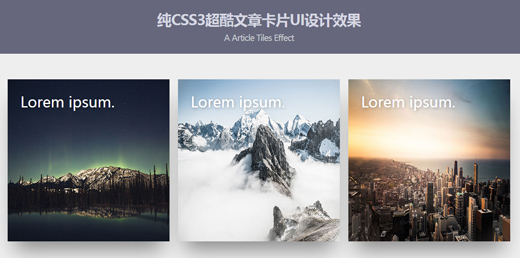這是一款使用純CSS3制作的超酷文章卡片UI設(shè)計效果。該文章卡片帶有陰影效果,當(dāng)鼠標(biāo)滑過卡片時,文章的描述信息會以滑動動畫的方式顯示在卡片中。